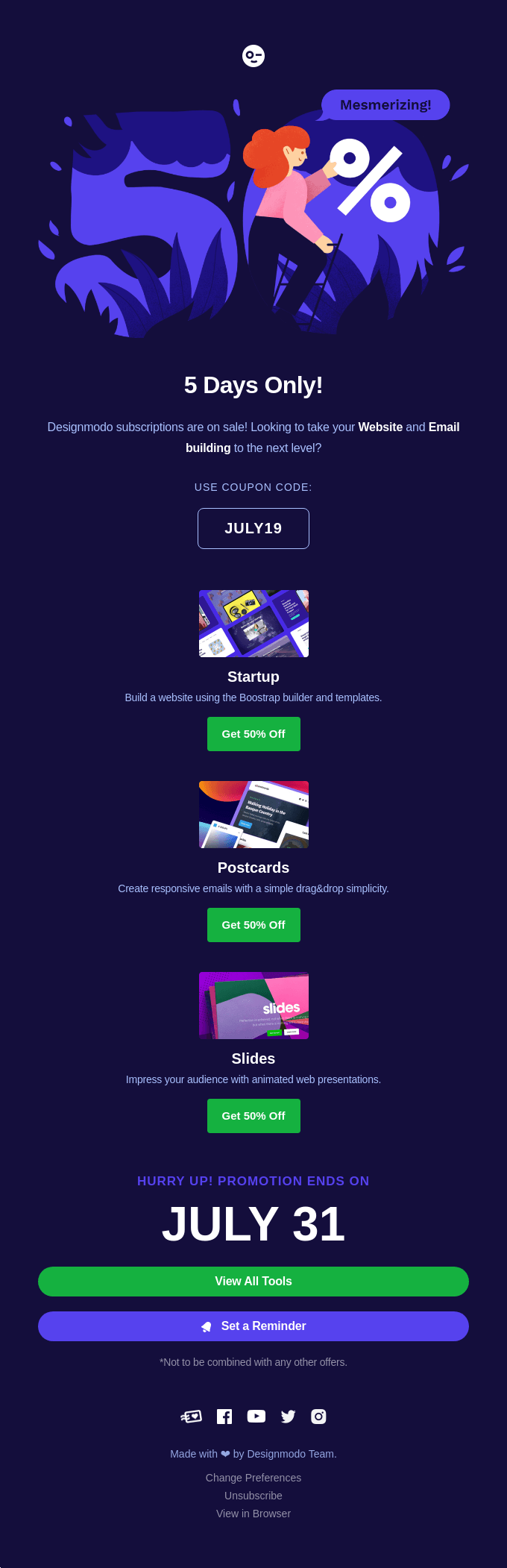 For 3 days only, we have dropped the prices for all of our Apps. Buy Startup, Slides, or Postcards apps and start to create websites and email newsletter templates online!