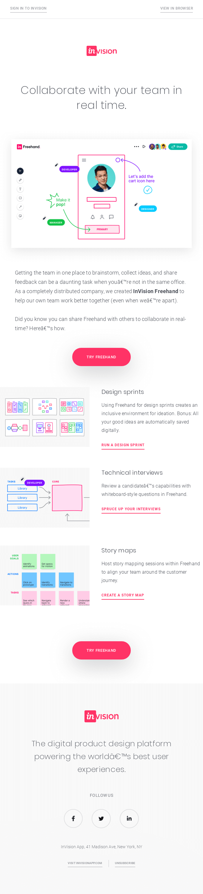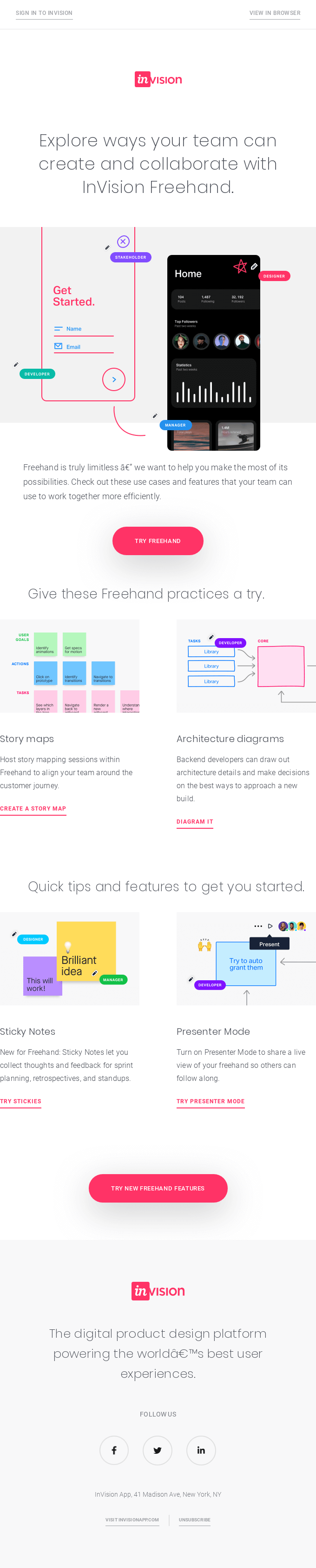 With ready-to-go mobile and desktop elements, the Wireframe template in InVision Freehand lets you sketch out your ideas faster than ever.