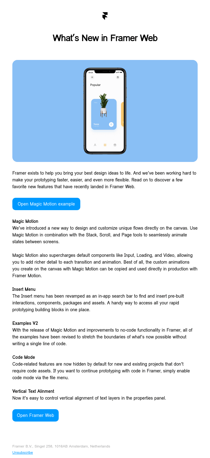 Today, we’re excited to officially launch Framer Web. It’s prototyping made simple—no code required, browser-based, and free for everyone.