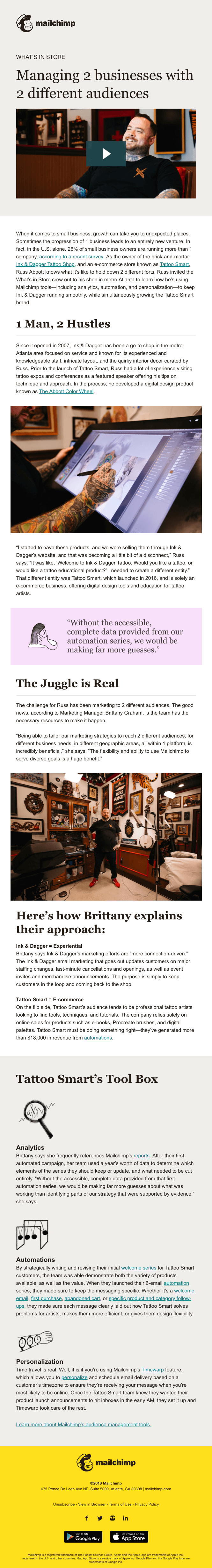 “Our email marketing campaigns are extremely effective in converting to sales,” Katie says. “Social media is amazing and really helps with awareness, but when we’re converting customers from awareness to purchase we found email marketing with Mailchimp to be one of the most effective—if not the most effective—tool.”