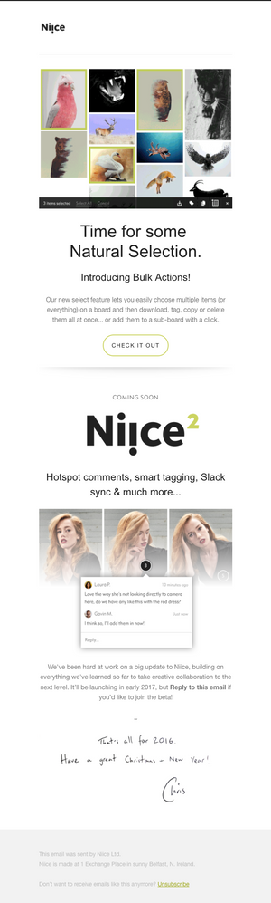 App Emails & NewslettersProduct Update / New Feature Emails & Newsletters NEW! Introducing Live Boards. - Niice Email Newsletter Niice Email & Newsletters September 16, 2022 — 1 minute read NEW! Introducing Live Boards. - Newsletter Text ContentNoSuchKeyThe specified key does not exist.Download "NEW! Introducing Live Boards." Email Newsletter Html Code Introducing live boards introducing-live-boards.html 127 Bytes download-circle Share this post The link has been copied!