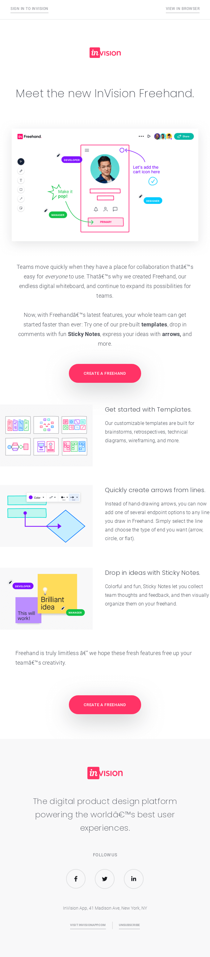 Freehand lets you brainstorm and iterate on designs quickly, giving everyone on your team the power to share their ideas