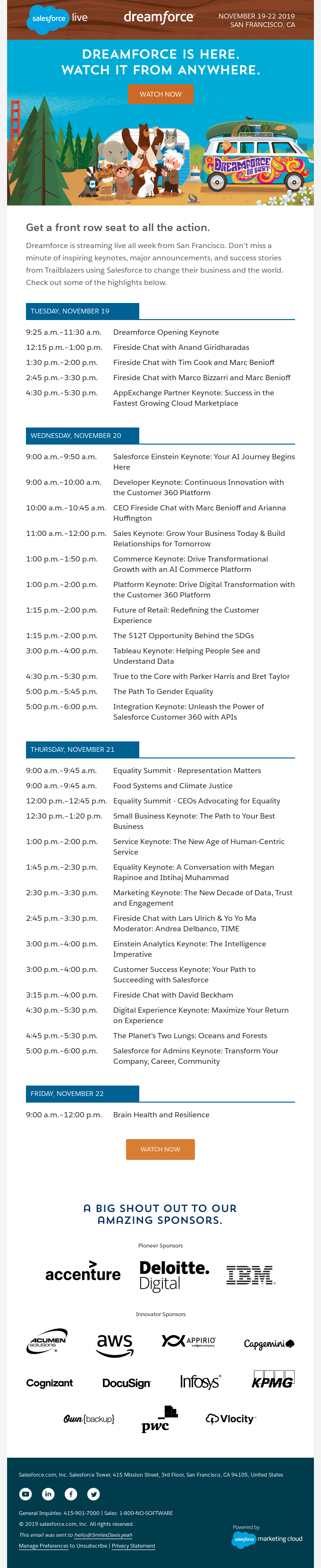 We have amazing teams across Salesforce that are here for you. This moment reminds us that we’re all connected like never before. We’re called upon to be our best selves, with patience, understanding and compassion. On behalf of all of us at Salesforce, we’re committed to being your partner and persevering together in all the days and years ahead.