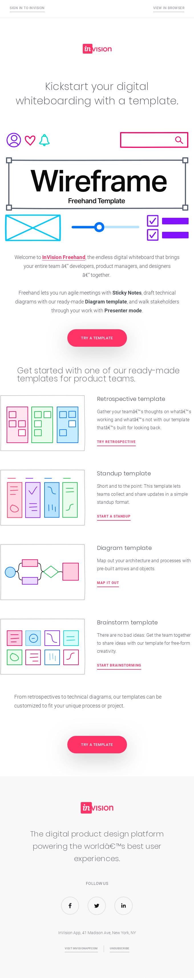 New for Freehand: Templates for brainstorms, wireframes, and more -Invision Email Newsletter