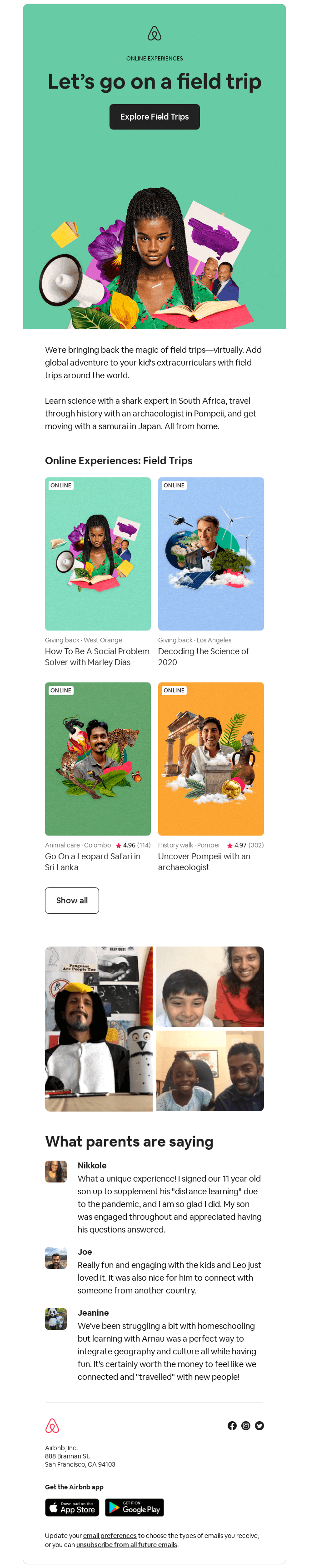 Virtual field trips for curious learners - Airbnb Email Newsletter