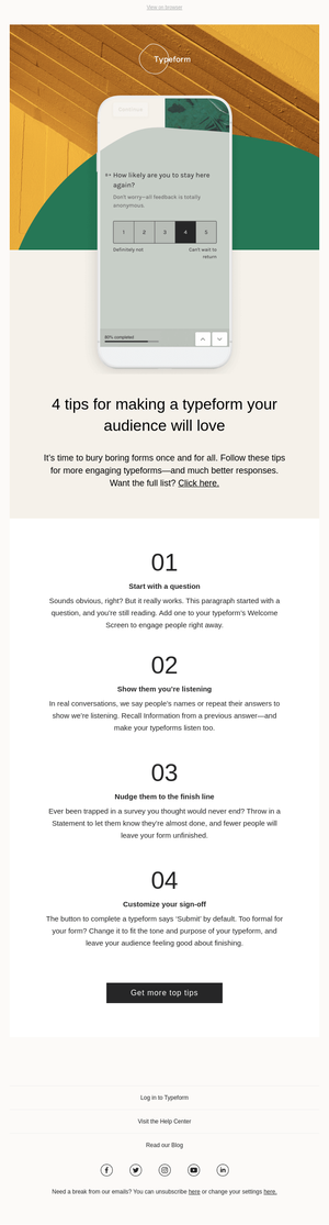 Log in to Typeform | Visit the Help Center | Read our Blog